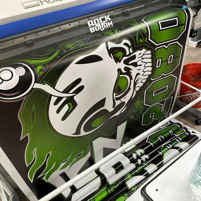 Upload all your artwork and space it according to how big and how many of each print you need. Suggested file types are vector .eps, .pdf, .ai or .svg & .png. High resolution will produce the best quality prints. RBB is not responsible for pixelated or raster images of low resolution.